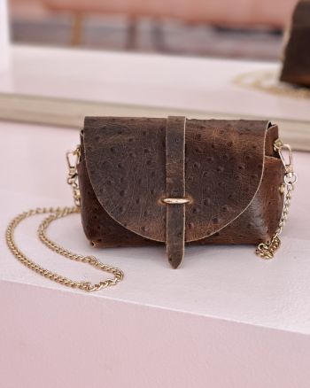 The bag has one compartment and a chain in gold colour. Can be worn in the hand or on the shoulder.
