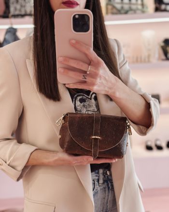 Match our crossbody mini handbag with the Lunch time mules and the leather belt Bonnie
