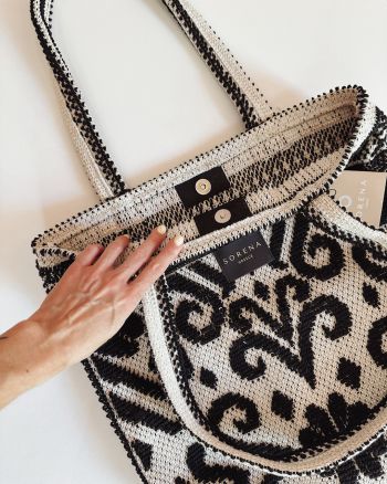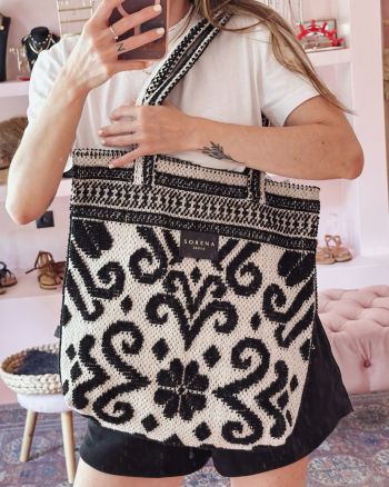 The bag is made of cotton embroidered fabric. It is a perfect combination of elegance and style. It has the perfect size to keep it with you all day! It has a lot of space inside and is lightweight.