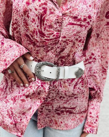 - white belt with silver buckle