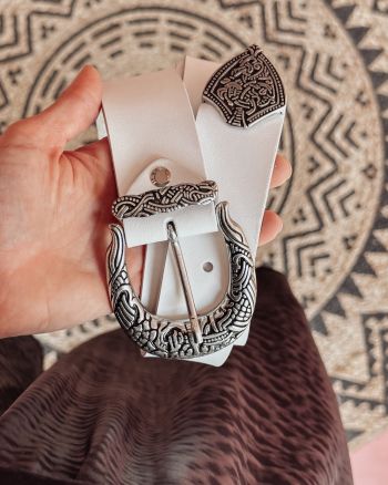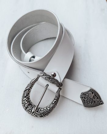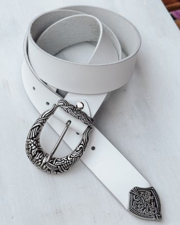- white belt with bronze buckle
