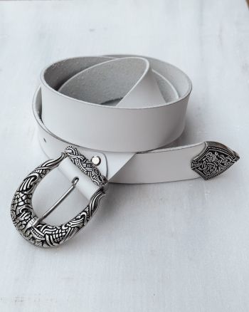 Jade white leather belt for women, handmade to order.