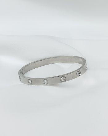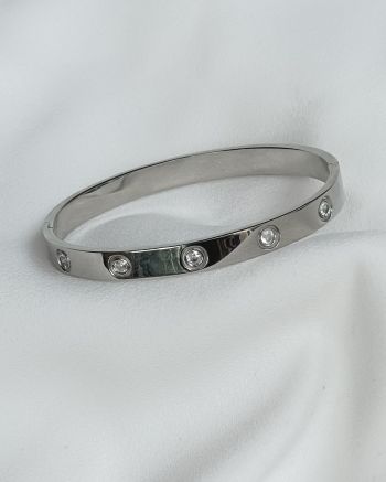 Zircon cuff silver, high quality stylish bracelet made of steel.