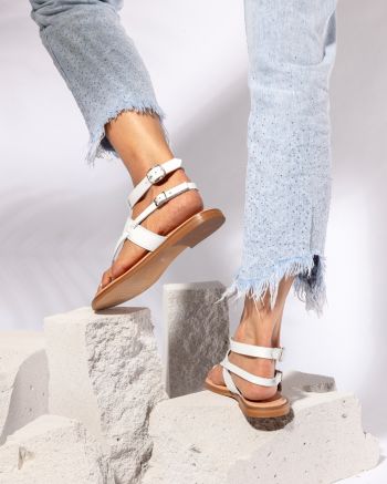 A pair of sandals that reflects a dynamic yet feminine style. These strappy sandals are perfect for every day featured in a sturdy leather design with a flat, soft sole.