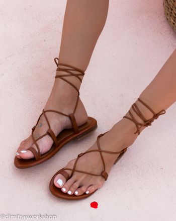 Step out and feel great in these eye-catching leather sandals featuring crisscrossed cords and toe ring with a chic wrapped ankle.