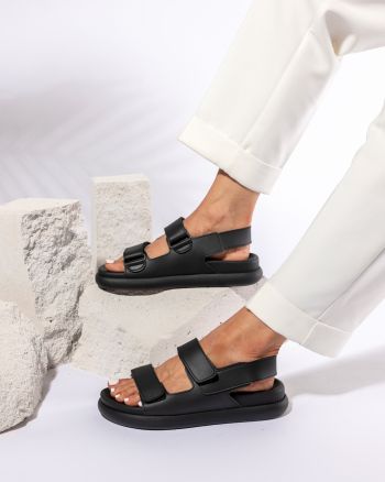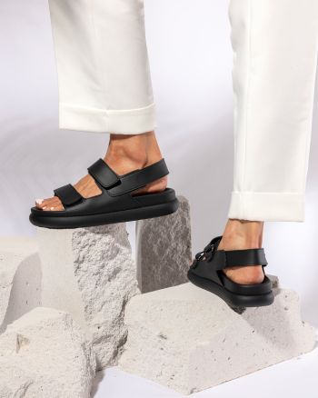 Urban Lover black, comfortable chunky leather sandals with adjustable velcro straps. Perfect for all day wear, with almost all clothes! You will undoubtedly receive many compliments this summer wearing these sandals.