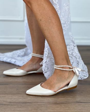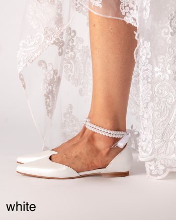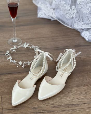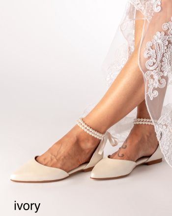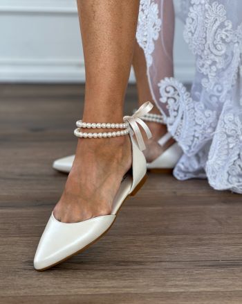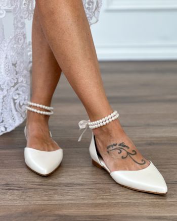 There is something so chic and pretty about a pair of bridal flats. They are comfortable, practical and carefully made. Choose the right pair to tie in with your wedding day style and it will be as gorgeous and chic as heels! Our elegant classy bridal flats Audrey are embellished with pearls at the ankle and are made from genuine leather.