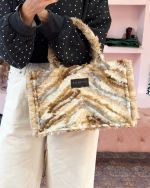 Η τσάντα είναι κατασκευασμένη από εξαιρετικό ύφασμα που της προδίδει την απαλή, βελούδινη υφή. Διαθέτει ανάλαφρες βαμβακερές φούντες που χαρίζουν κίνηση και κομψότητα. Έχει ιδανικό μέγεθος για να μην την αποχωρίζεστε όλη μέρα.