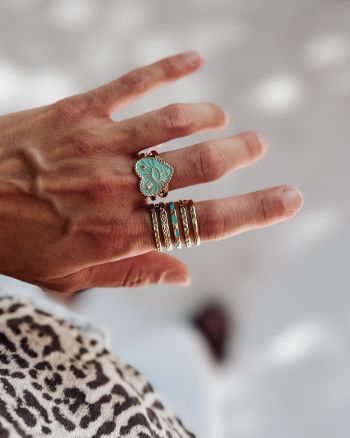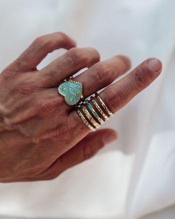 Δαχτυλίδι χρυσό boho με τιρκουάζ λεπτομέρειες