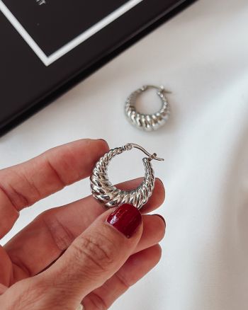 Κρίκοι ασημένιοι σε όμοροφο σχέδιο.