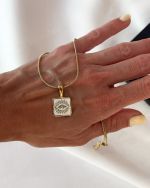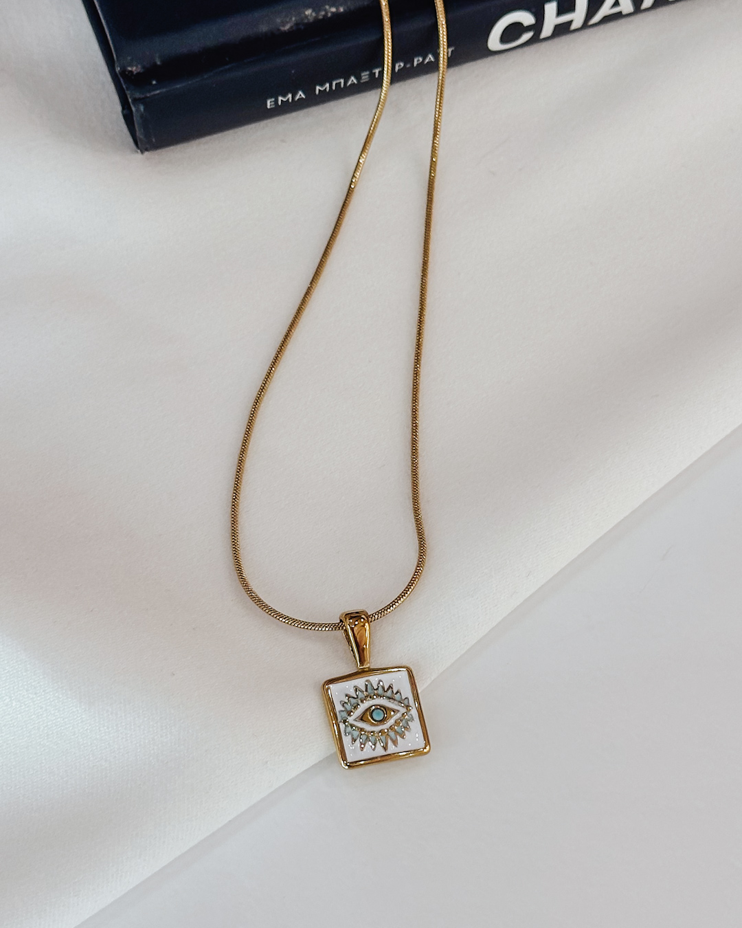 Boho eye square, χειροποίητο κολιέ για το λαιμό με αλυσίδα και στοιχείο από ατσάλι.