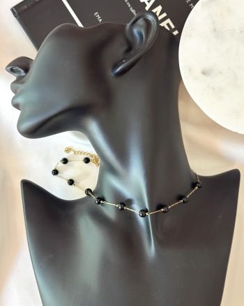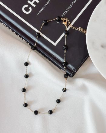 Choker onyx black, χειροποίητο κολιέ γυναικείο με αλυσίδα από ατσάλι και πέτρα όνυχα.