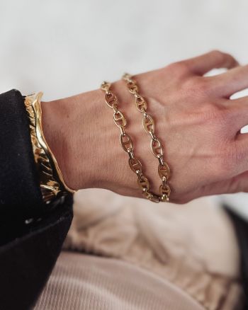 Αλυσίδα από ανοξείδωτο ατσάλι σε χρυσό χρώμα.