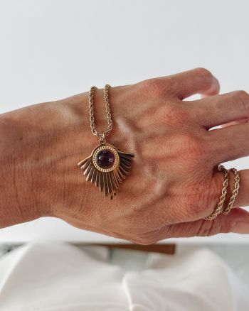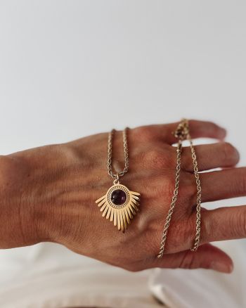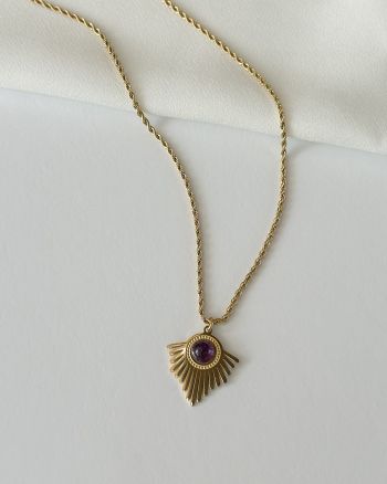 - Μωβ ημιπολύτιμη πέτρα - τουρμαλίνη (η απόχρωση του μωβ ενδέχεται να διαφέρει ελαφρώς σε κάθε κολιέ)