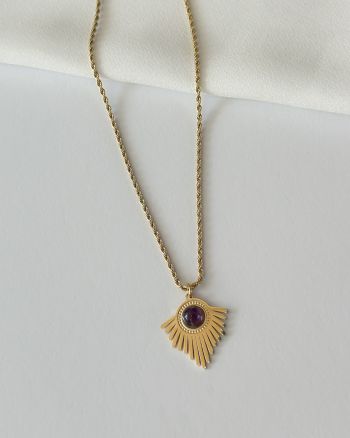 Rising sun, κολιέ γυναικείο με αλυσίδα από ατσάλι και ημιπολύτιμη πέτρα.