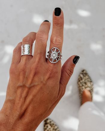 Δαχτυλίδι με σχέδιο ήλιου και πέτρα χαολίτη στο κέντρο! Υπέροχο σχέδιο που αναδεικνύει καταπληκτικά το στυλ και τραβά τα βλέμματα σε κάθε εμφάνιση!