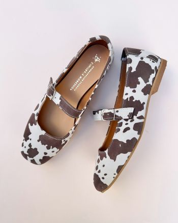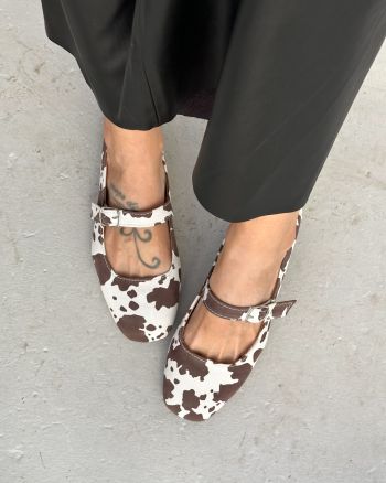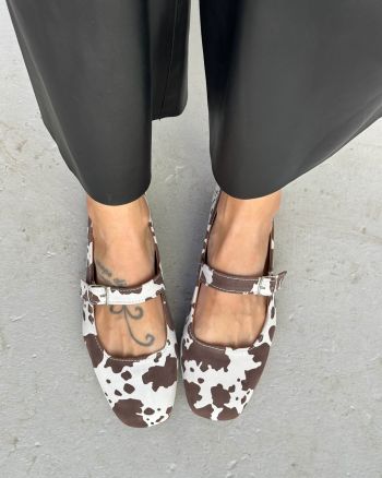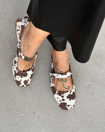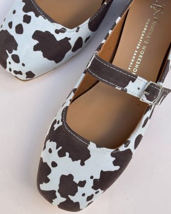 Γυναικείες μπαλαρίνες με σχέδιο cow από suede δέρμα - άνετες και κομψές για καθημερινή χρήση.