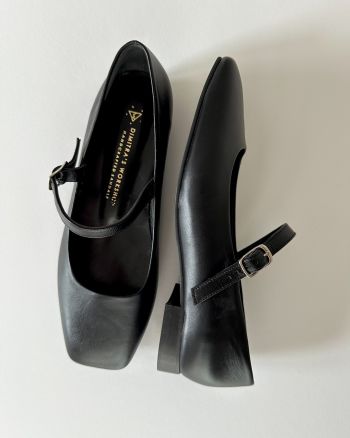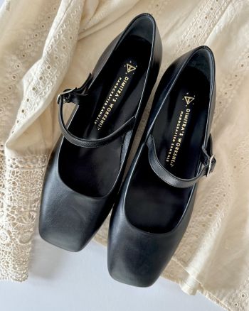 Mary Jane μαύρες δερμάτινες μπαλαρίνες.