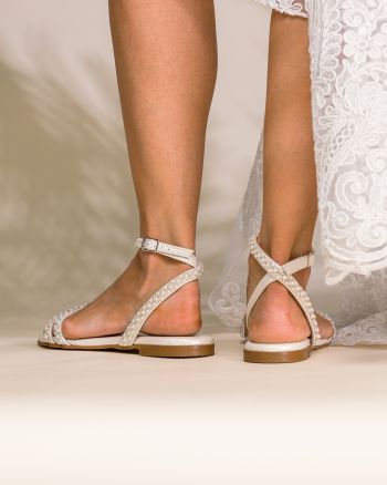 Υπάρχει κάτι τόσο κομψό και όμορφο σε ένα ζευγάρι χαμηλών νυφικών σανδαλιών. Είναι άνετα, πρακτικά και ξεχωριστά. Διαλέξτε το κατάλληλο ζευγάρι για να ταιριάξετε με το στυλ της ημέρας του γάμου σας και θα είναι τόσο υπέροχο και σικάτο όσο και τα ψηλοτάκουνα! Τα κομψά flat νυφικά μας σανδάλια Anesis είναι διακοσμημένα με μικρές λευκές κεντητές χάντρες στα λουράκια.