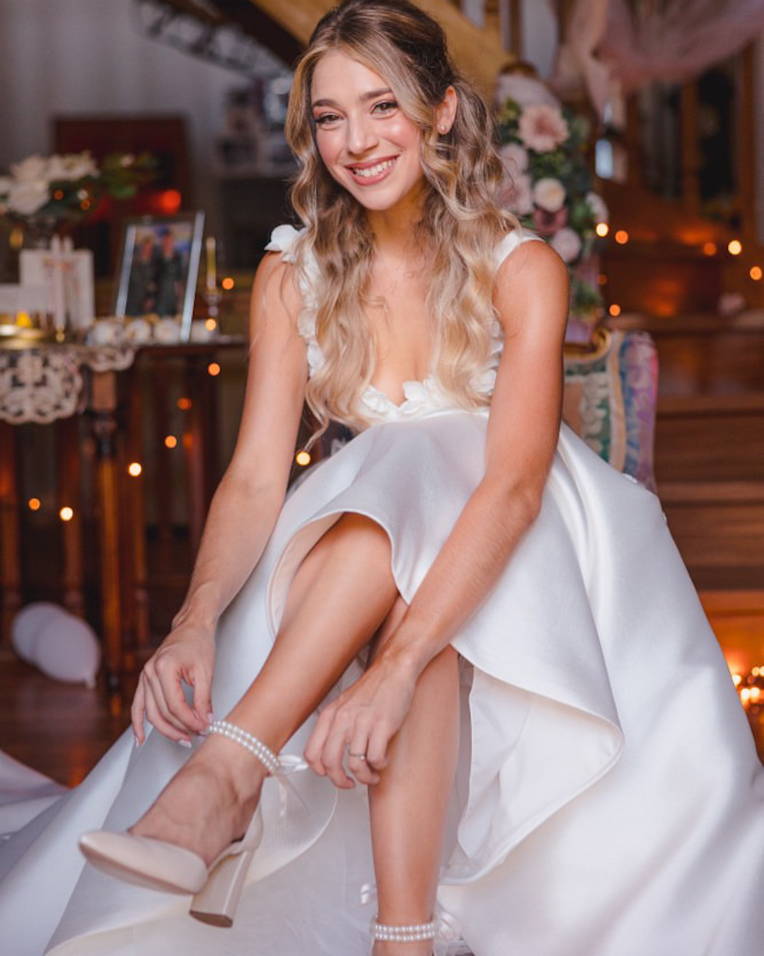 Αυτές οι δερμάτινες νυφικές γόβες συνδυάζουν κομψότητα και σταθερότητα. Το μυτερό τελείωμα και το V άνοιγμα δημιουργούν μια φίνα, κολακευτική γραμμή, ενώ η κλειστή φτέρνα και το λουράκι στον αστράγαλο κρατούν το πόδι ασφαλές σε κάθε βήμα. Το σταθερό χοντρό τακούνι 8 εκ. προσφέρει άνεση και σιγουριά για πολλές ώρες. Οι πέρλες που δένουν πίσω με κορδέλα προσθέτουν ρομαντική λάμψη και ολοκληρώνουν υπέροχα το bridal look. Χειροποίητες στην Ελλάδα.