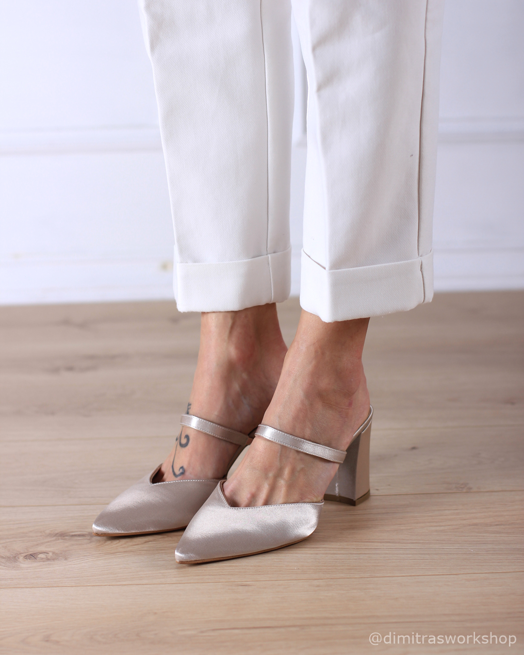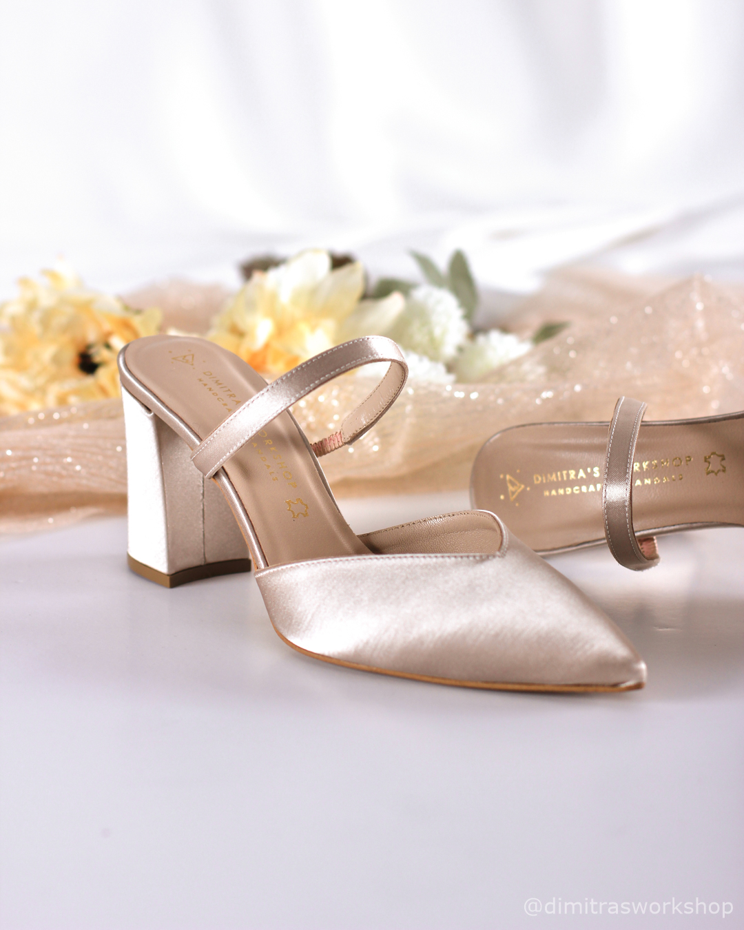 Anneliese σατέν νυφικά mules σε nude απόχρωση.