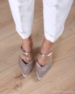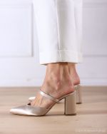 Το πολυτελές σατέν εξωτερικό χαρίζει διακριτική λάμψη στο κλασικό mule σχέδιο, ενώ το εσωτερικό του είναι επενδυμένο με δέρμα, εξασφαλίζοντας φυσική αίσθηση άνεσης και σωστή εφαρμογή. Το χοντρό σταθερό τακούνι χαρίζει σιγουριά σε κάθε βήμα, ενώ η λεπτή μπαρέτα αγκαλιάζει διακριτικά το κουτεπιέ, προσθέτοντας μια κομψή πινελιά.