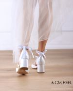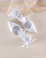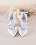 Audrey λευκές νυφικές γόβες με πέρλες στον αστράγαλο.
