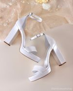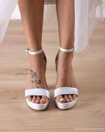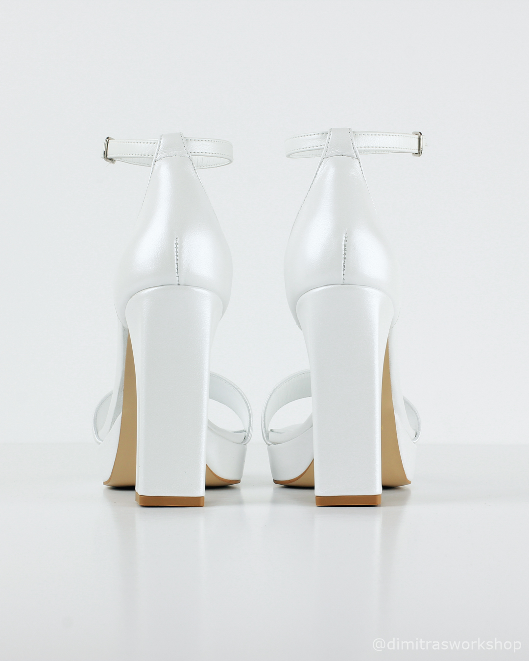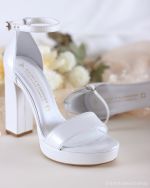 Το χοντρό τακούνι 11 εκ. προσφέρει ύψος και εντυπωσιακή σιλουέτα, ενώ η φιάπα βοηθά να αισθάνεστε πιο άνετο το ύψος στο περπάτημα. Το καθαρό λευκό δέρμα του το κάνει διαχρονικό και εύκολο να ταιριάξει με κάθε bridal look, από minimal έως ρομαντικό.