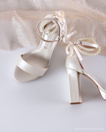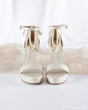 - Πέρλες και κορδέλα. Το παπούτσι συνοδεύεται με δερμάτινο λουράκι με αγκράφα για να το αλλάζετε με τις πέρλες ή να τα φοράτε μαζί για περισσότερη σταθερότητα.