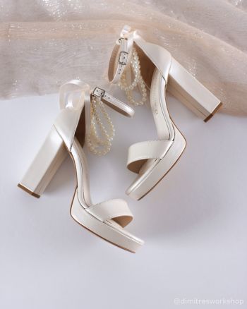 Camille Pearls ιβουάρ νυφικά δερμάτινα πέδιλα με φιάπα, λουράκι και πέρλες στον αστράγαλο.