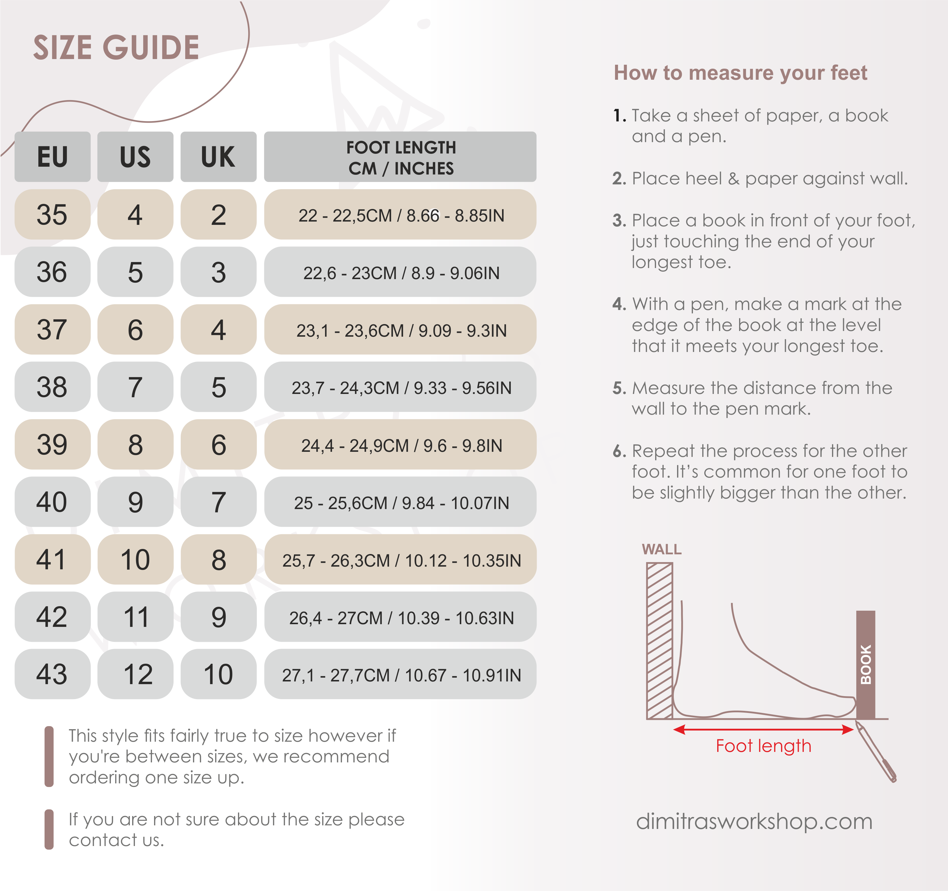 Εάν δεν είστε σίγουροι για το μέγεθος, επικοινωνήστε μαζί μας.