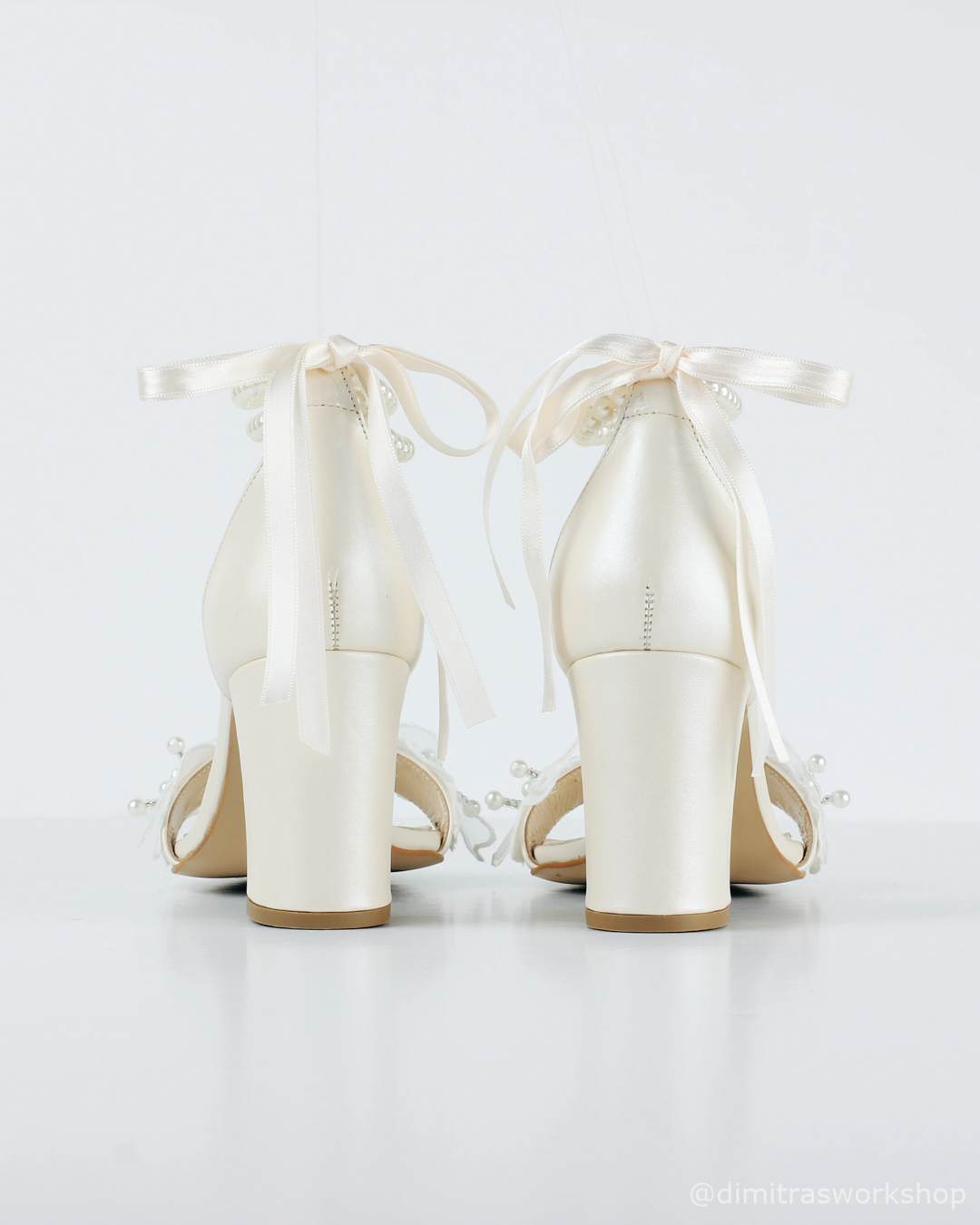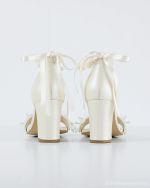 Το Pearls είναι ένα νυφικό πέδιλο από ιβουάρ δέρμα, σχεδιασμένο για άνεση και σταθερότητα χωρίς να χάνει σε κομψότητα. Το χοντρό, σταθερό τακούνι προσφέρει σίγουρο πάτημα, ενώ τα πολλά λουράκια αγκαλιάζουν το πόδι και βοηθούν να παραμένει η εφαρμογή ασφαλής από την τελετή μέχρι το πάρτι.